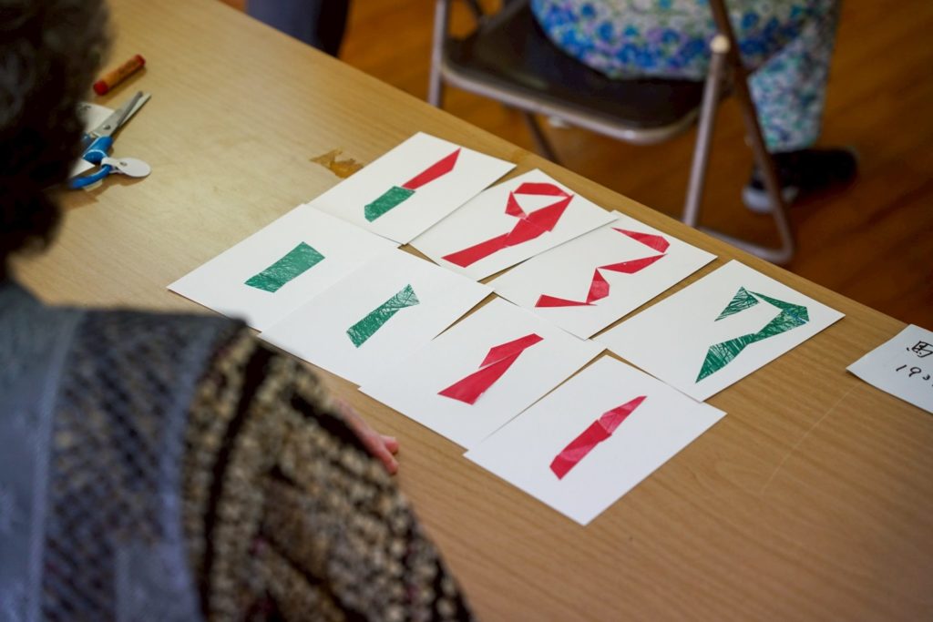 「紙のパズルで文字をつくる!」指先を動かして、頭の体操です